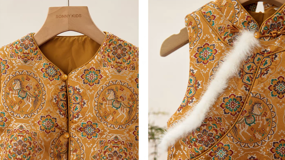 新年童裝 金駿福瑞唐裝背心 90-150cm 男童款/女童款 新年中式華服唐裝 新春馬年 2026年 AAA