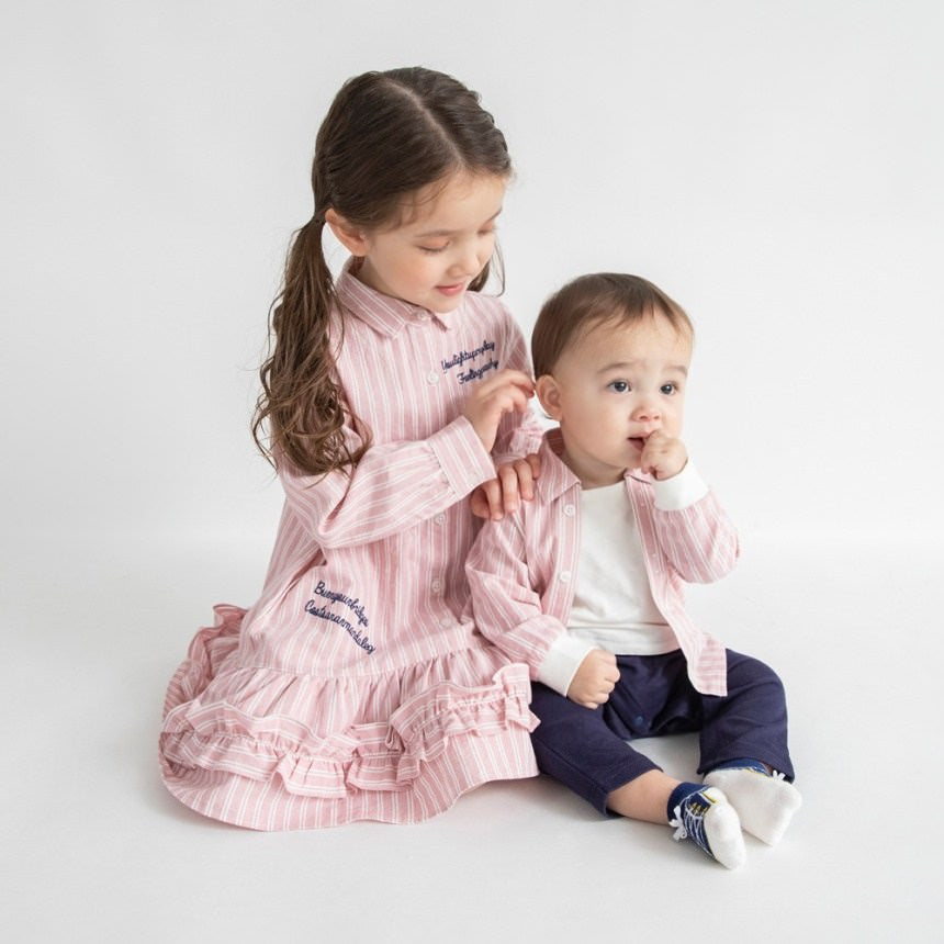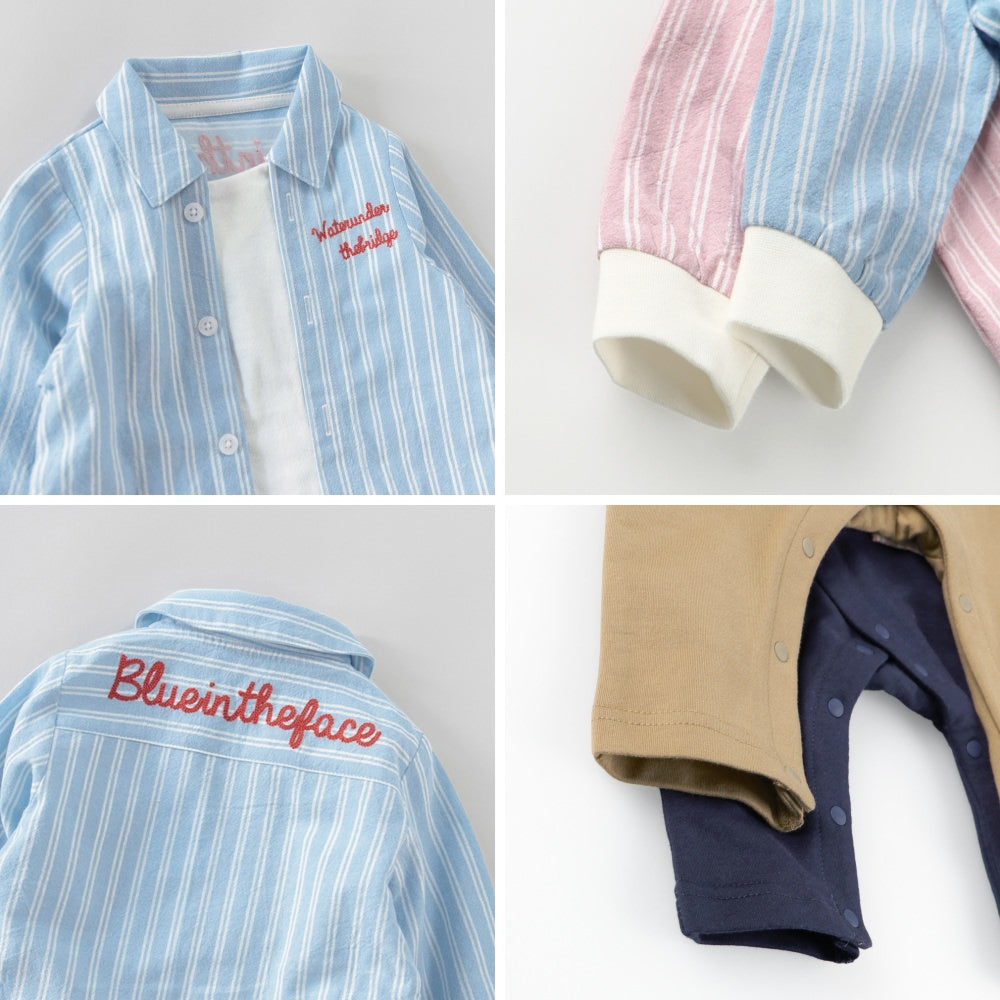日本童裝 Branshes 拼色襯衫連衣 70-80cm 初生嬰兒 女童款 春季 Jumpsuit 新之春