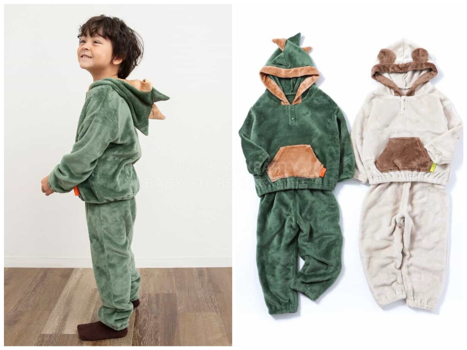 日本童裝 BREEZE 動物毛絨睡衣 80-130cm 男童款 冬季 TOPS PANTS 睡衣系列