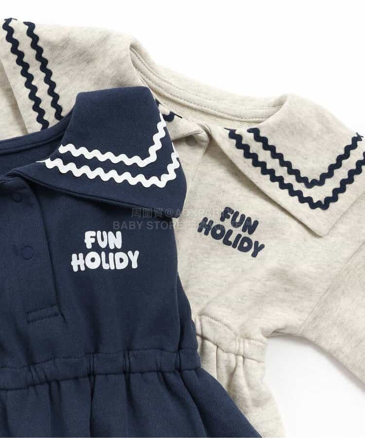 日本童裝 BREEZE 水手風連身衣 70-80cm 女童款 初生嬰兒 冬季 Jumpsuit