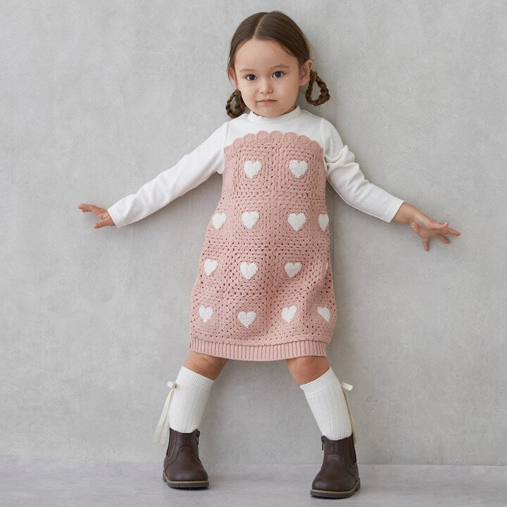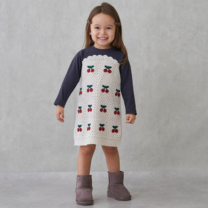 日本童裝 pe#main 鉤針編織拼接連身裙 80-130cm 女童款 秋季 DRESSES