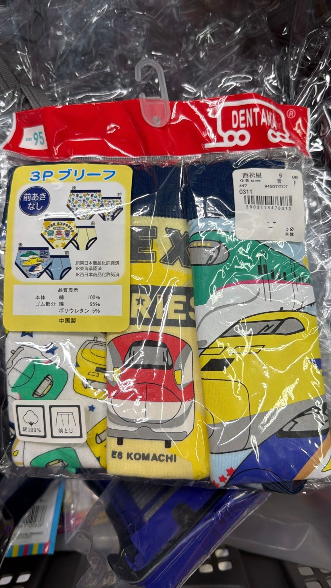 現貨區1-2日寄出--日本童裝 西松屋 新幹線 內褲3條 95cm