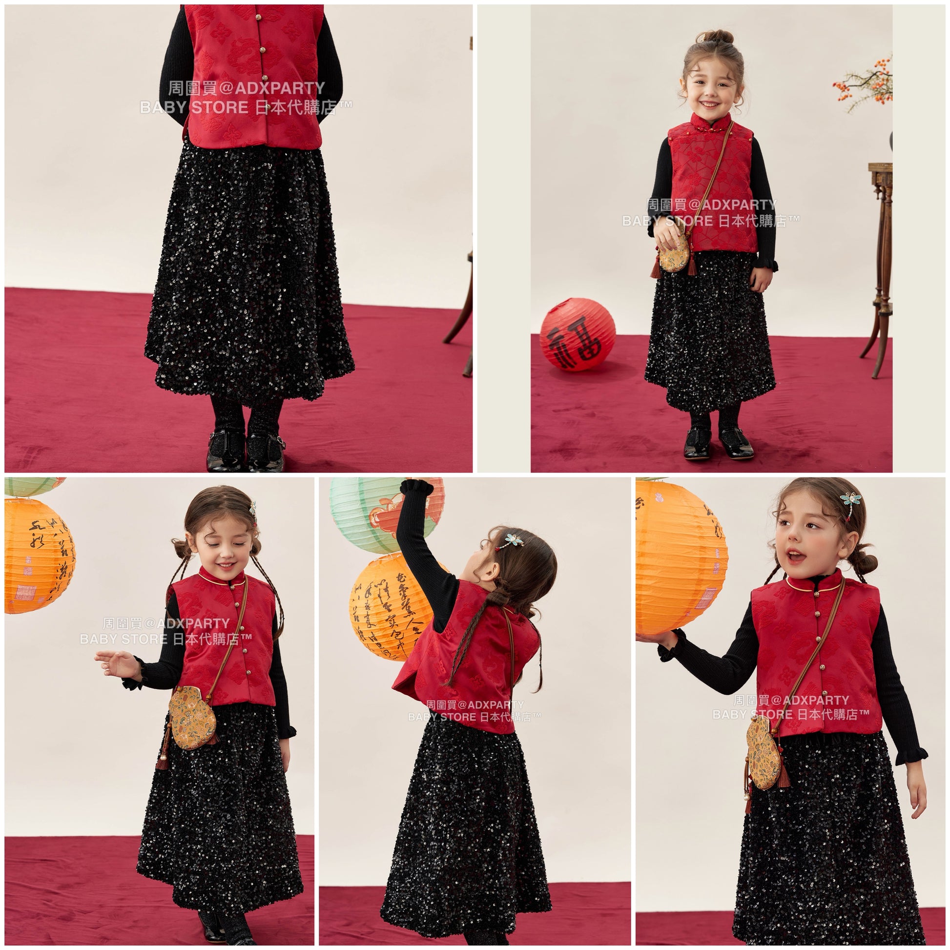 新年童裝 復古絲絨亮片半裙 90-140cm 女童款 新年中式華服唐裝 新春馬年 2026年