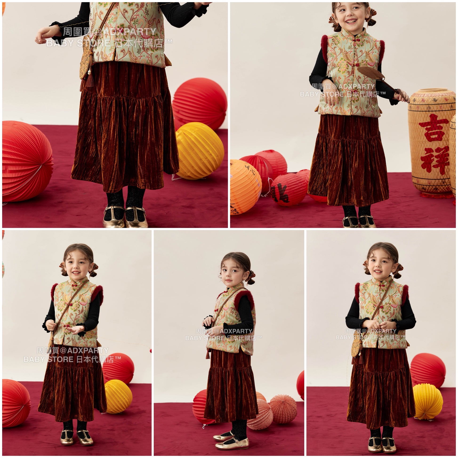 新年童裝 復古絲絨半裙 90-150cm 女童款 新年中式華服唐裝 新春馬年 2026年