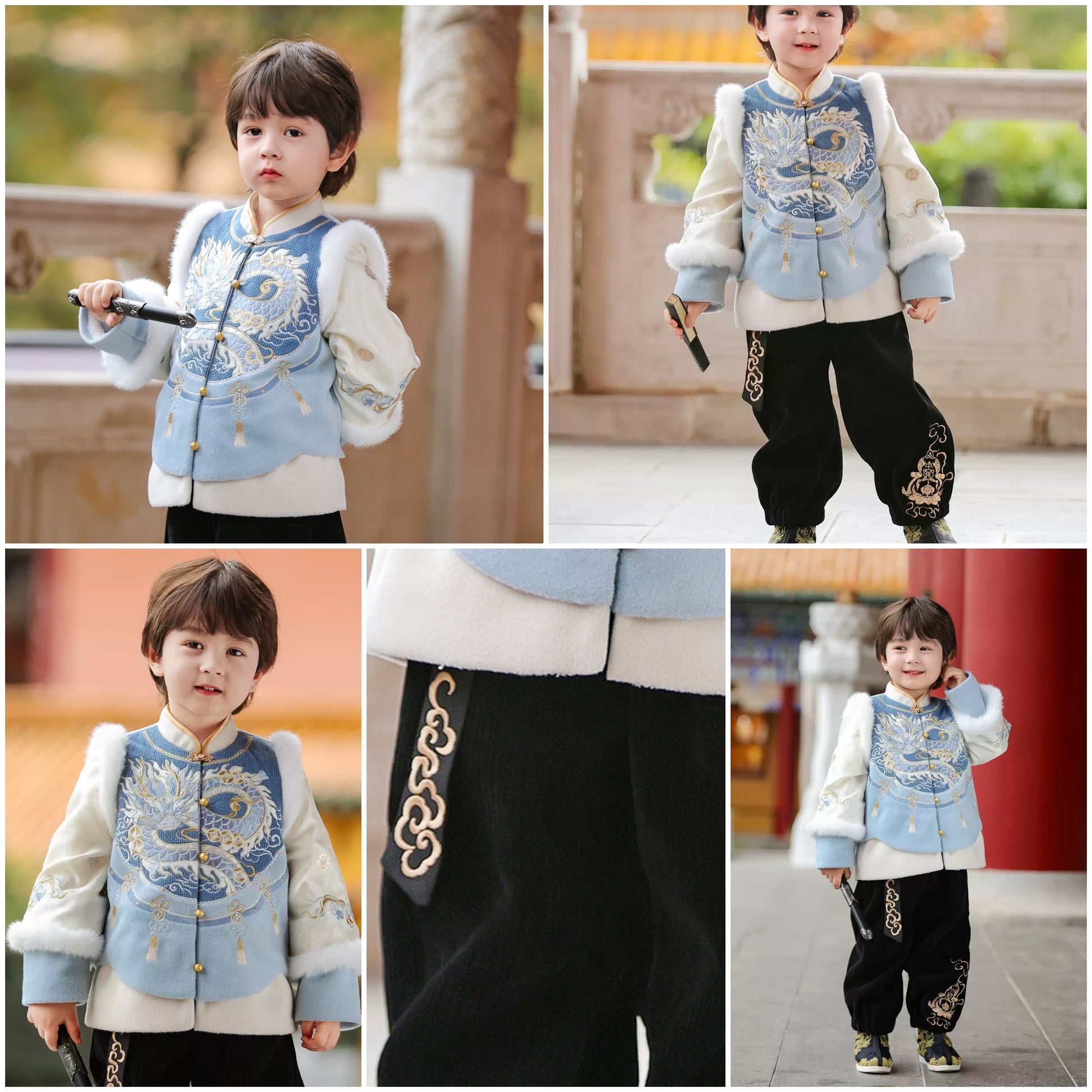 新年童裝 滄海游龍兩件套裝 100-150cm 男童款 新年中式華服唐裝 新春馬年 2026年