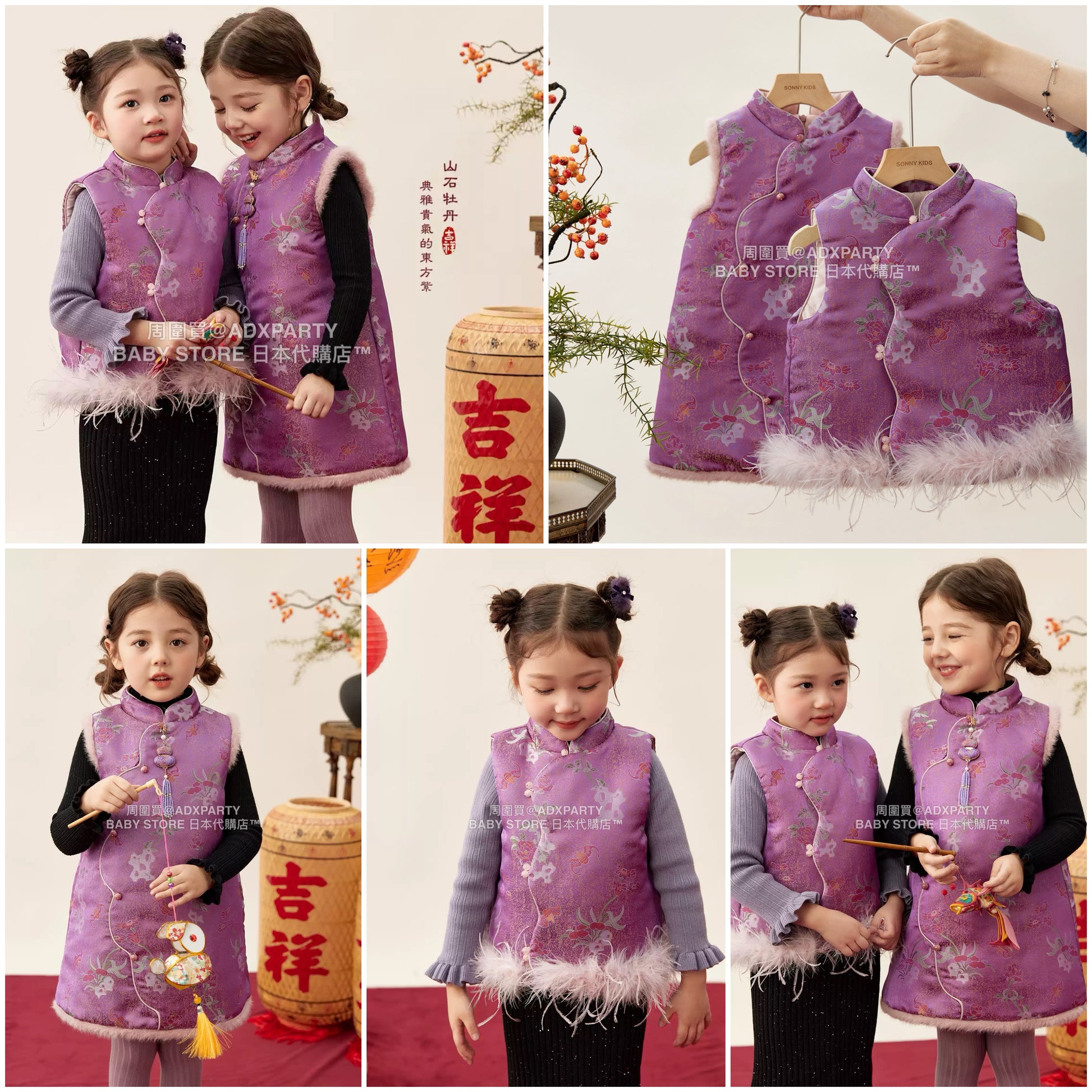 新年童裝 牡丹迎春唐裝背心/旗袍裙 90-140cm 女童款 新年中式華服唐裝 新春馬年 2026年 AAA