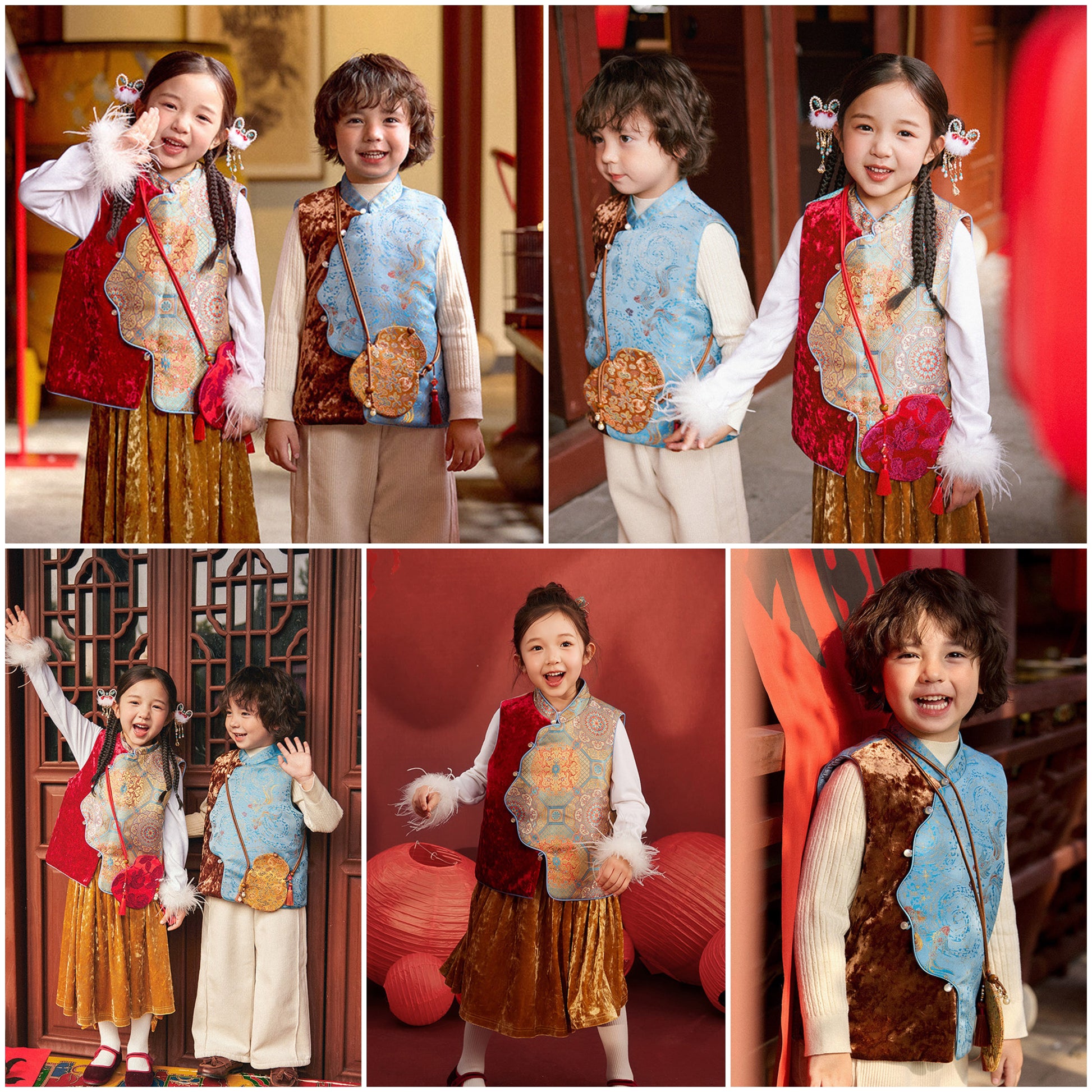 新年童裝 紋影鎏裳/星河鯉夢背心 90-150cm 男童款/女童款 新年中式華服唐裝 新春馬年 2026年 AAA