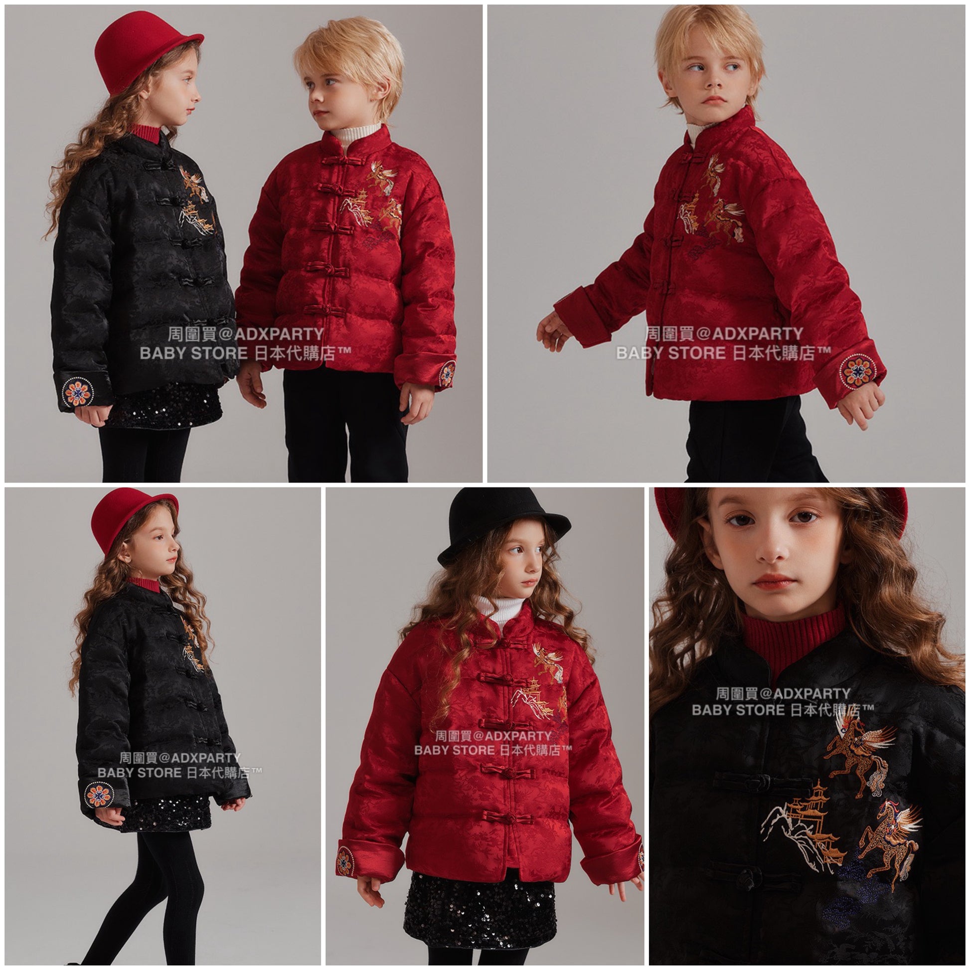 新年童裝 羽絨提花綢緞外套 120-165cm 男童款/女童款 新年中式華服唐裝 新春馬年 2026年
