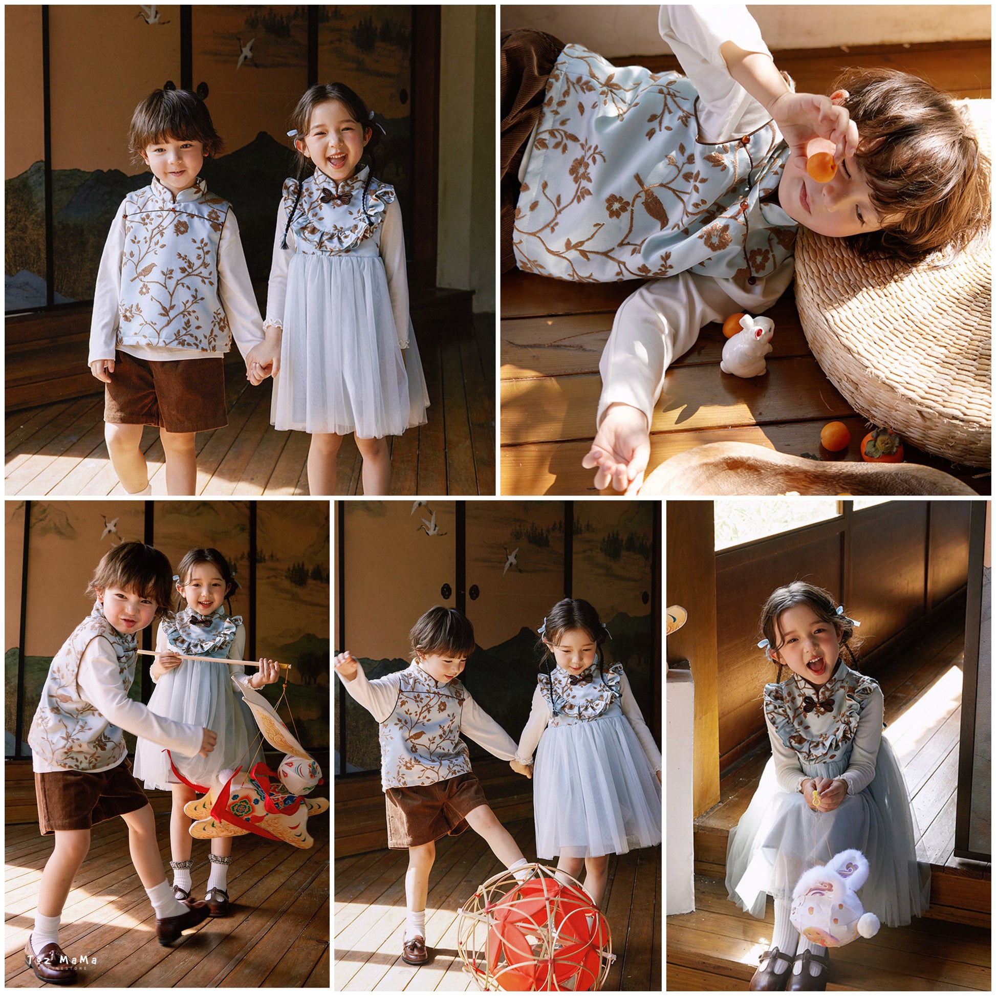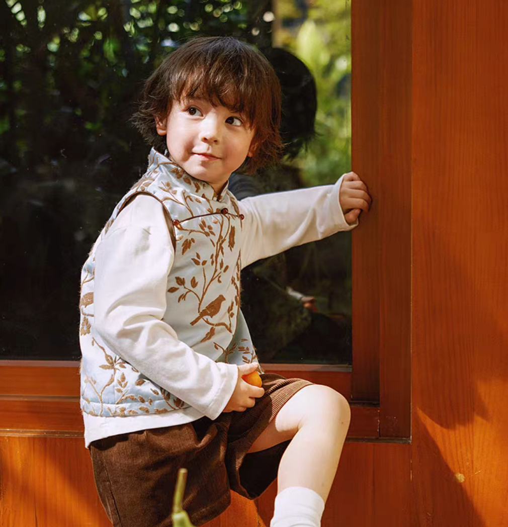 新年童裝 蘭若榴色唐裝背心/旗袍網紗背心裙 90-150cm 男童款/女童款 新年中式華服唐裝 新春馬年 2026年 AAA