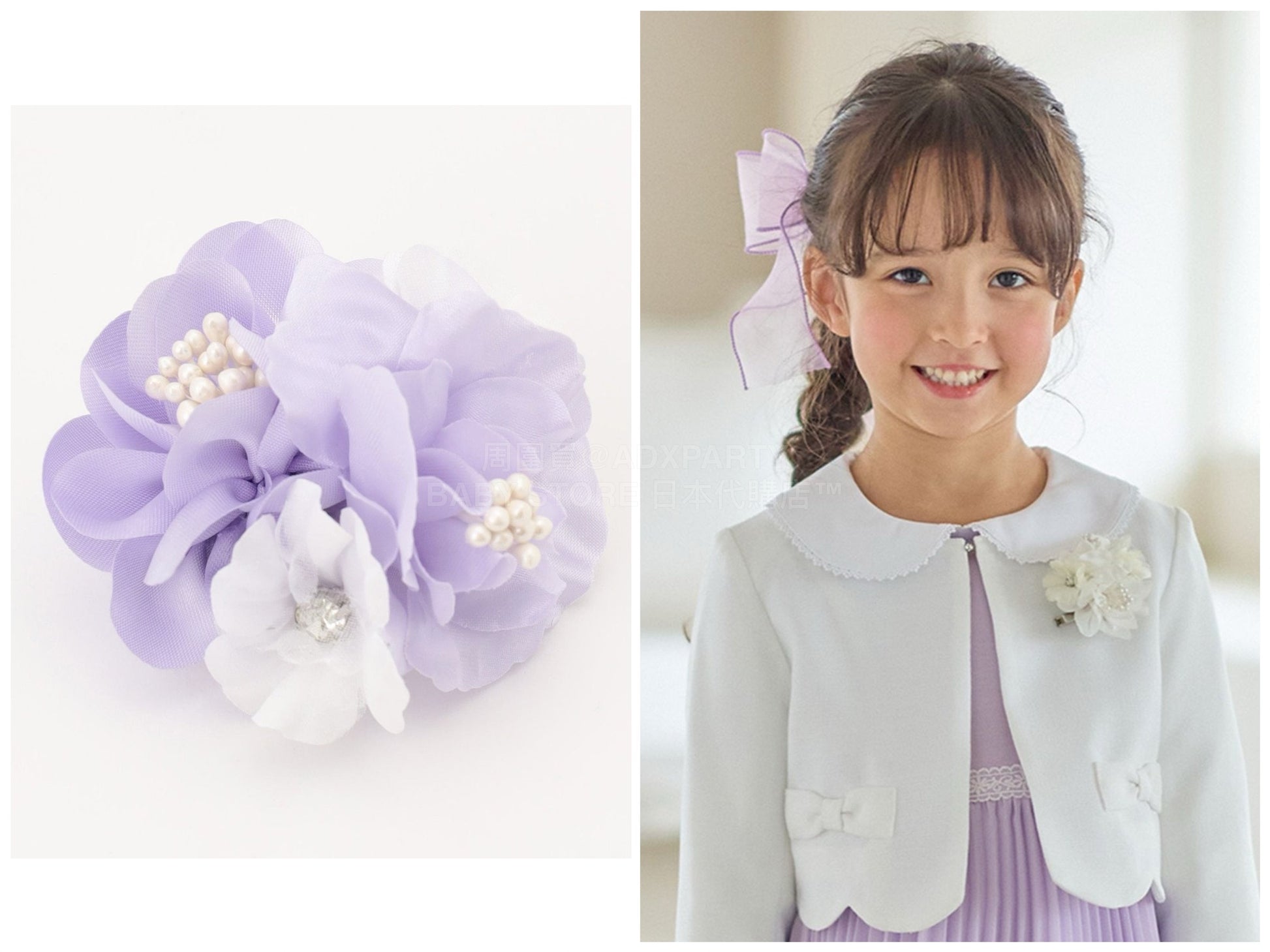 素材:ラベンダー/ホワイト:ポリエステル,人造真珠,ガラス