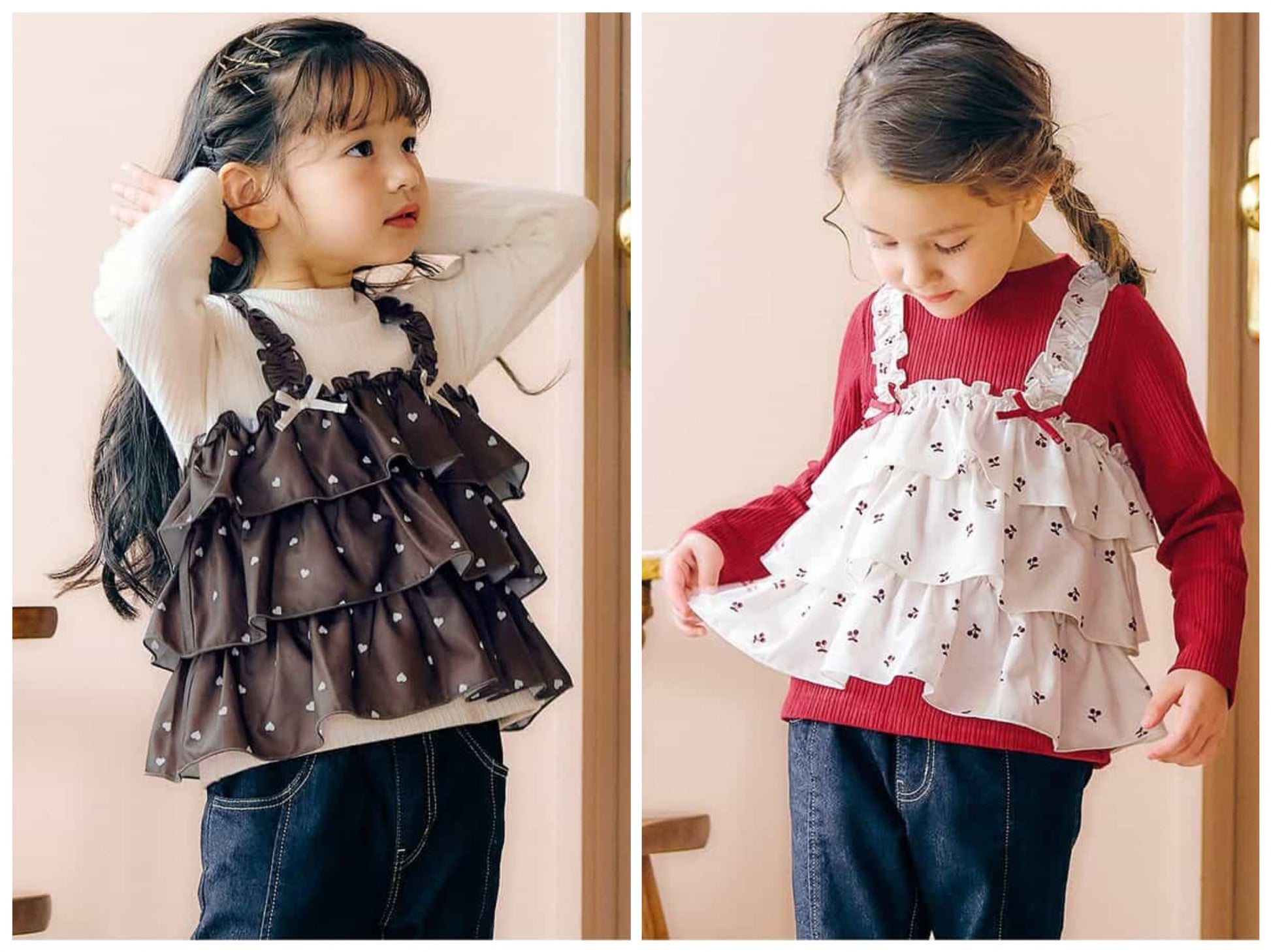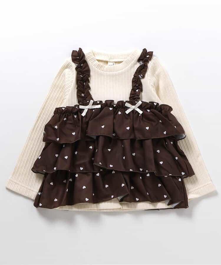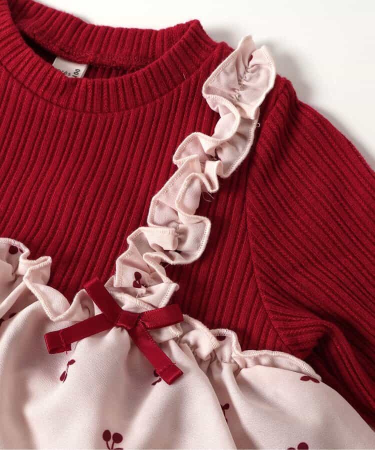 日本童裝 apres les cours 假兩件薄紗上衣 80-140cm 女童款 秋季 TOPS 聖誕紅/新年紅