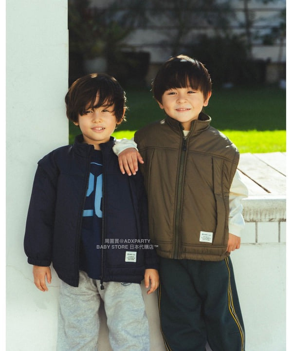 兼具時尚和功能性,真是萬能的夾棉外套。 袖子可以用拉鍊輕鬆取下,從外套到背心可以自由自在地享受風格。 既簡單又精緻,正面的切換設計讓人感受到講究,男孩更帥氣,女孩更突出可愛。