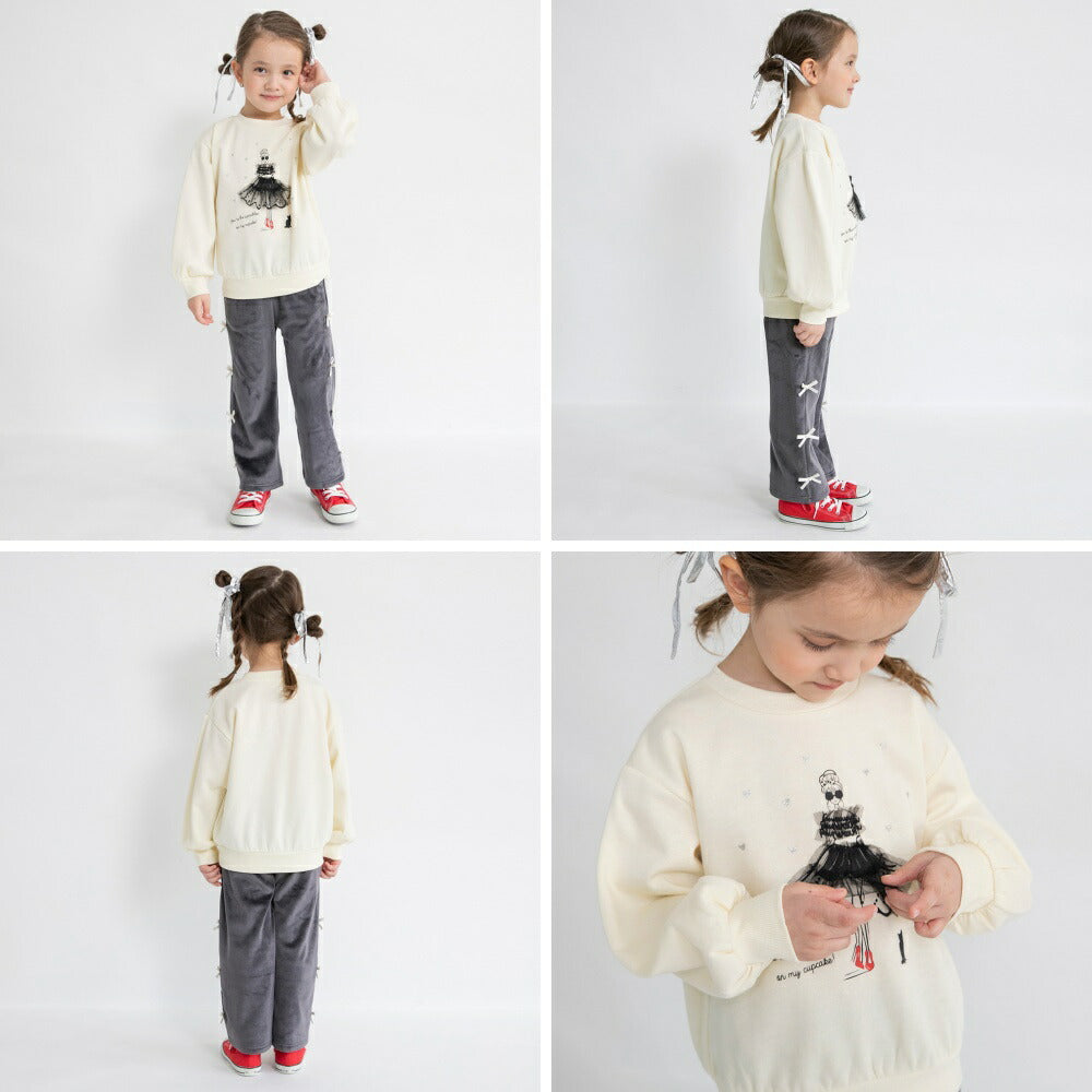 - 【アイボリー】本体:ポリエステル65% 綿35% リブ部分:ポリエステル62% 綿33% ポリウレタン5% チュール部分:ポリエステル100%【サックス】本体:ポリエステル65% 綿35% リブ部分:ポリエステル62% 綿33% ポリウレタン5% アップリケ:ポリエステル100%