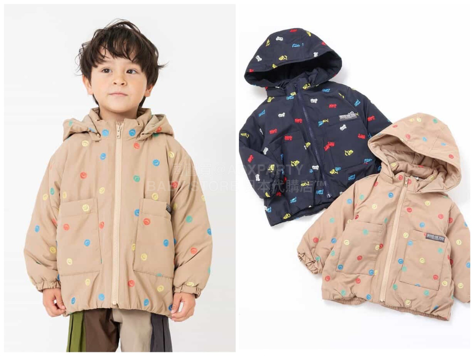 日本童裝 BREEZE 刺繡圖案夾棉外套 90-130cm 男童款 冬季(適合香港平均溫度、寒冷天氣、溫度低天氣)OUTERWEAR