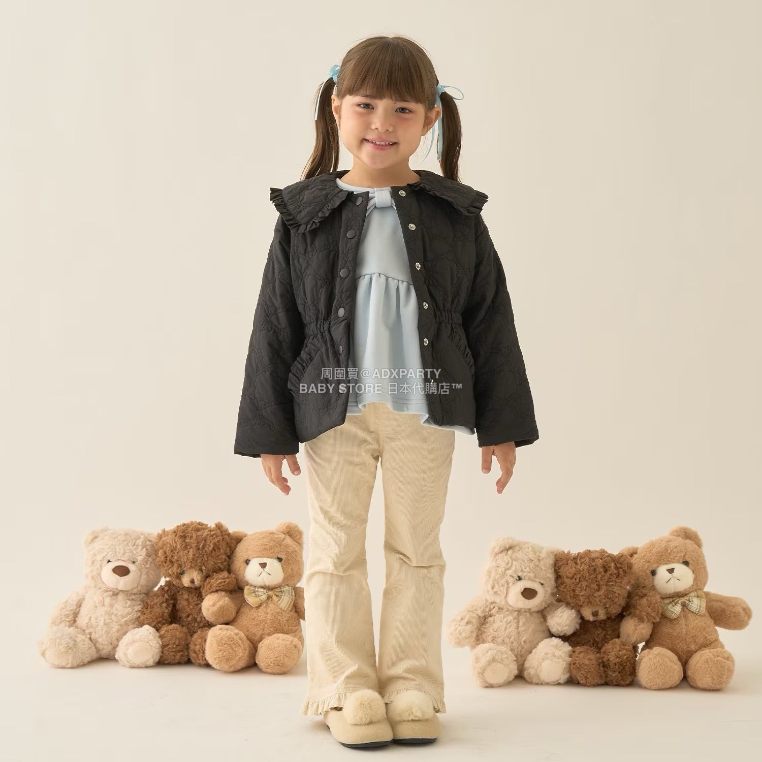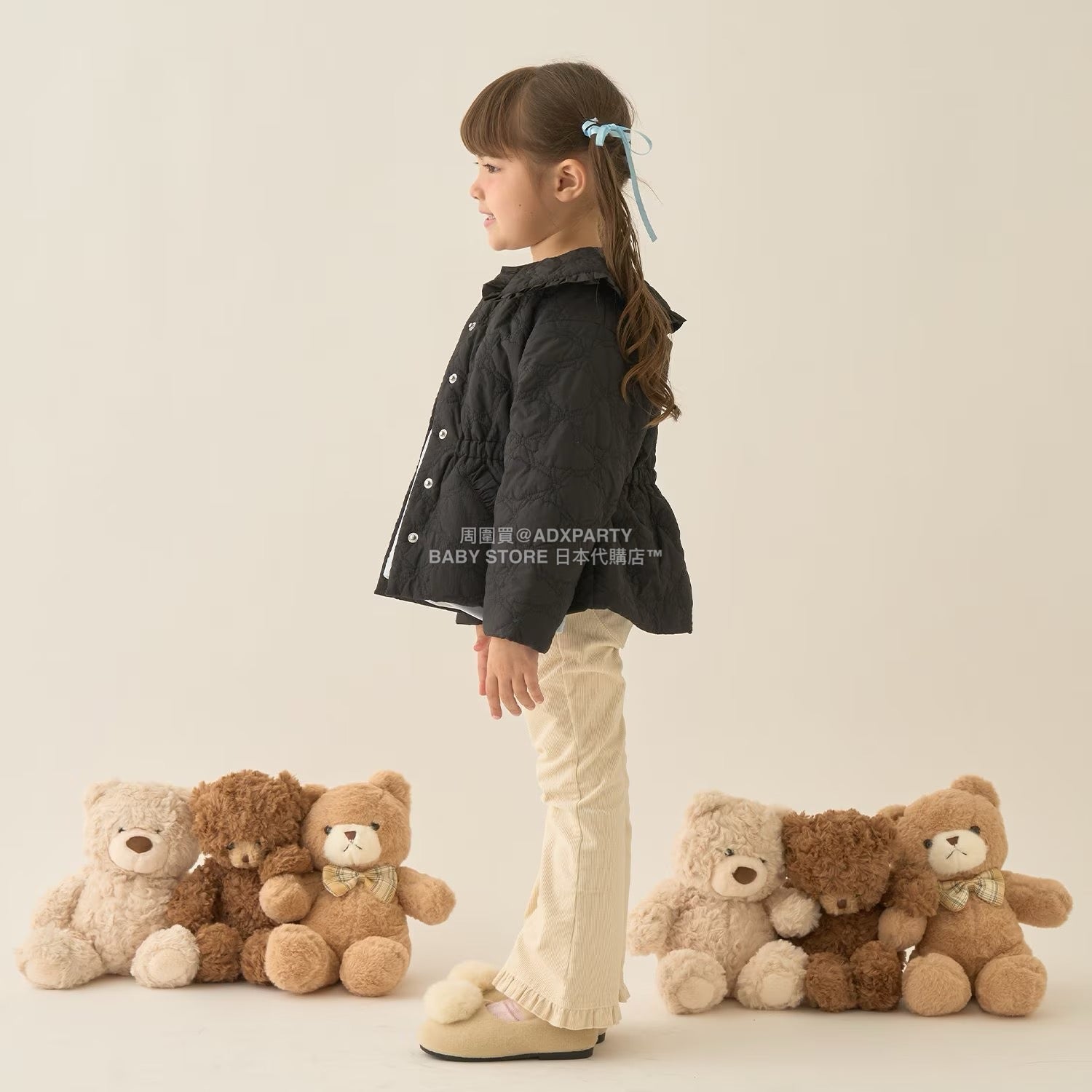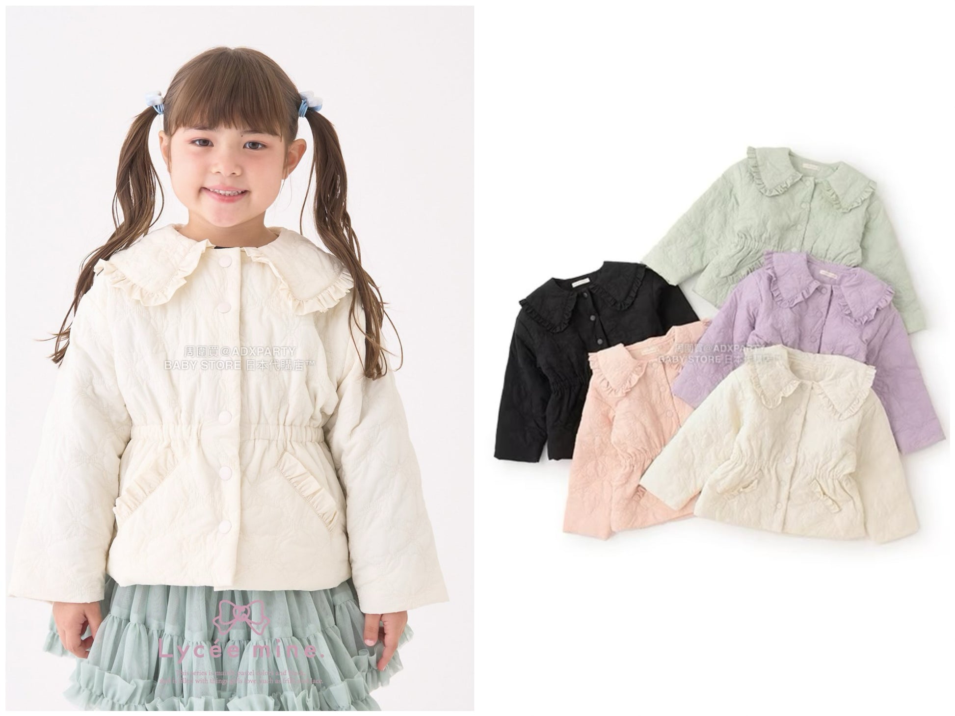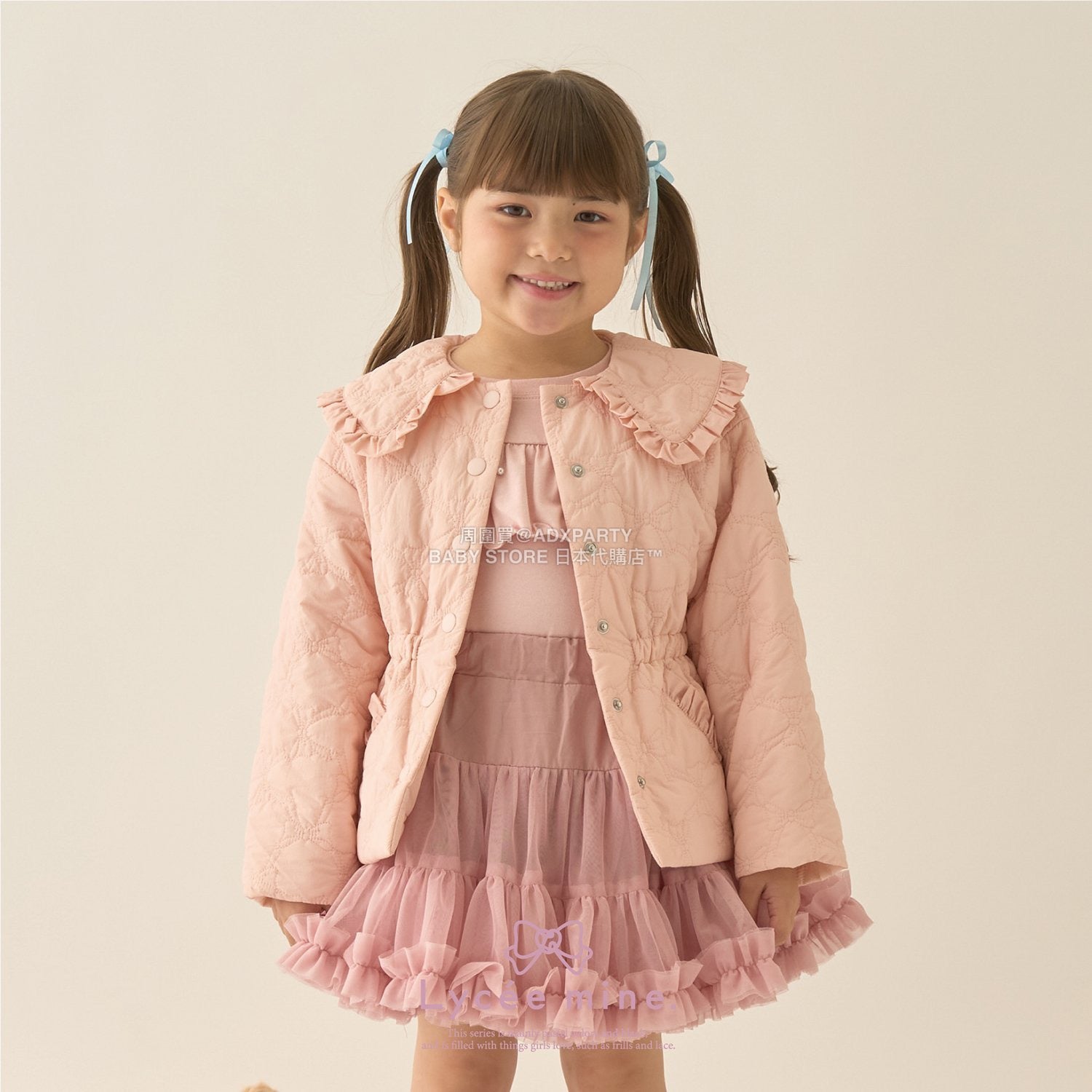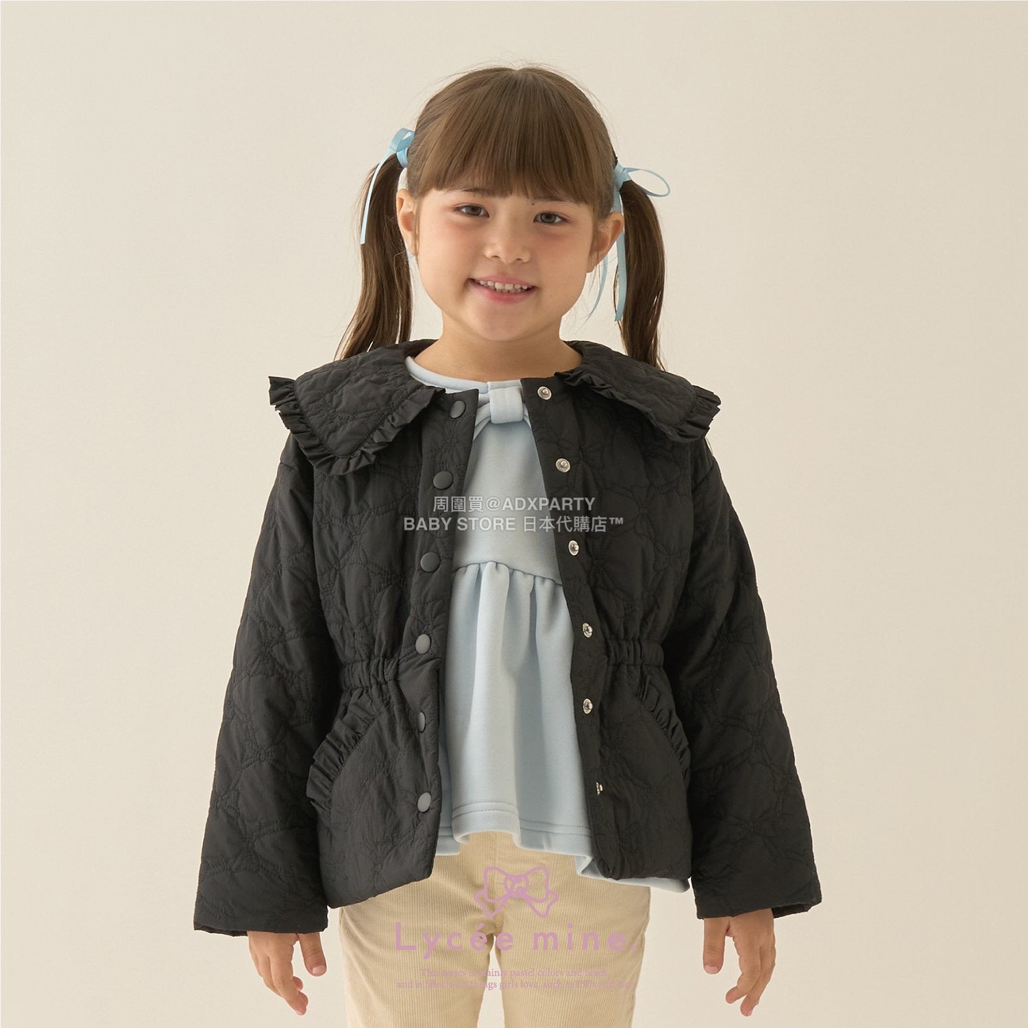 日本童裝 Ly# mine 中長款蝴蝶結絎縫外套 100-150cm 女童款 冬季 (適合初秋、香港平均溫度)OUTERWEAR