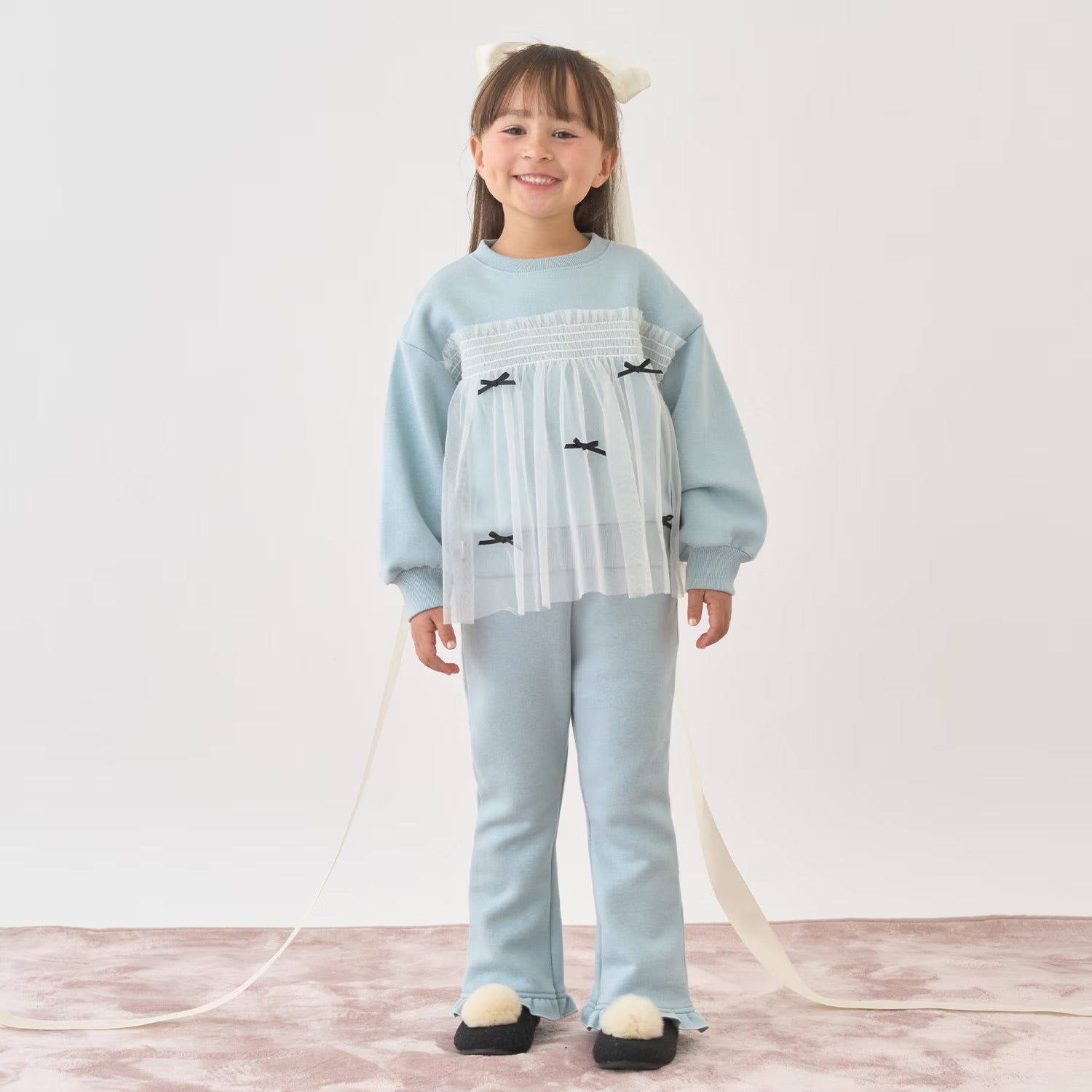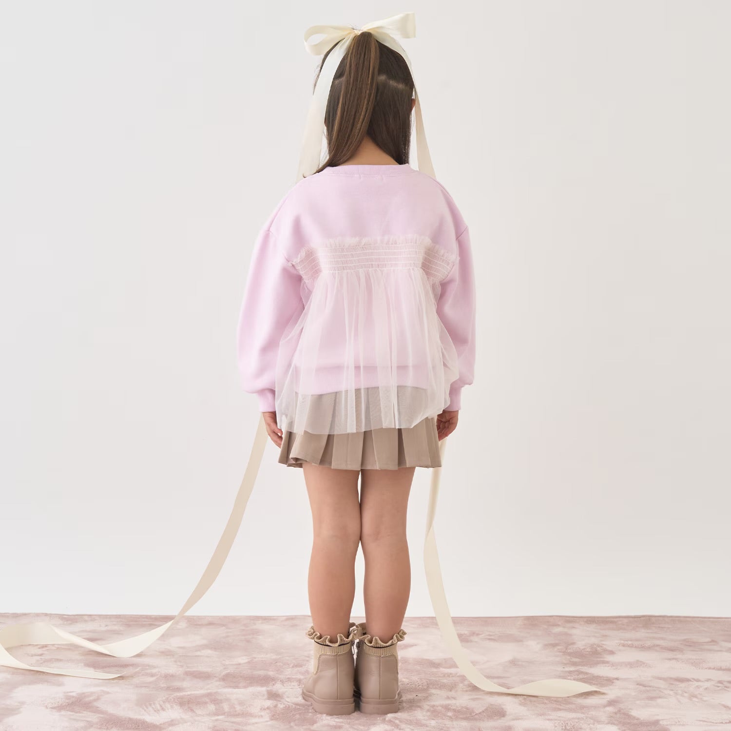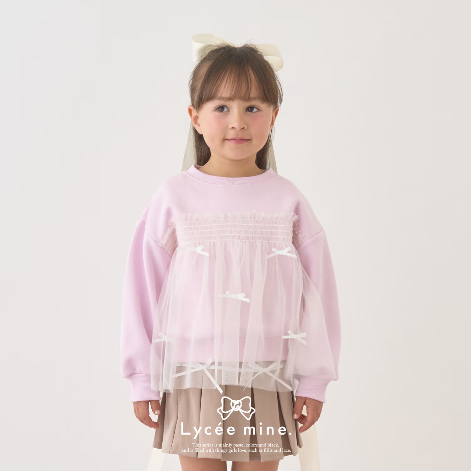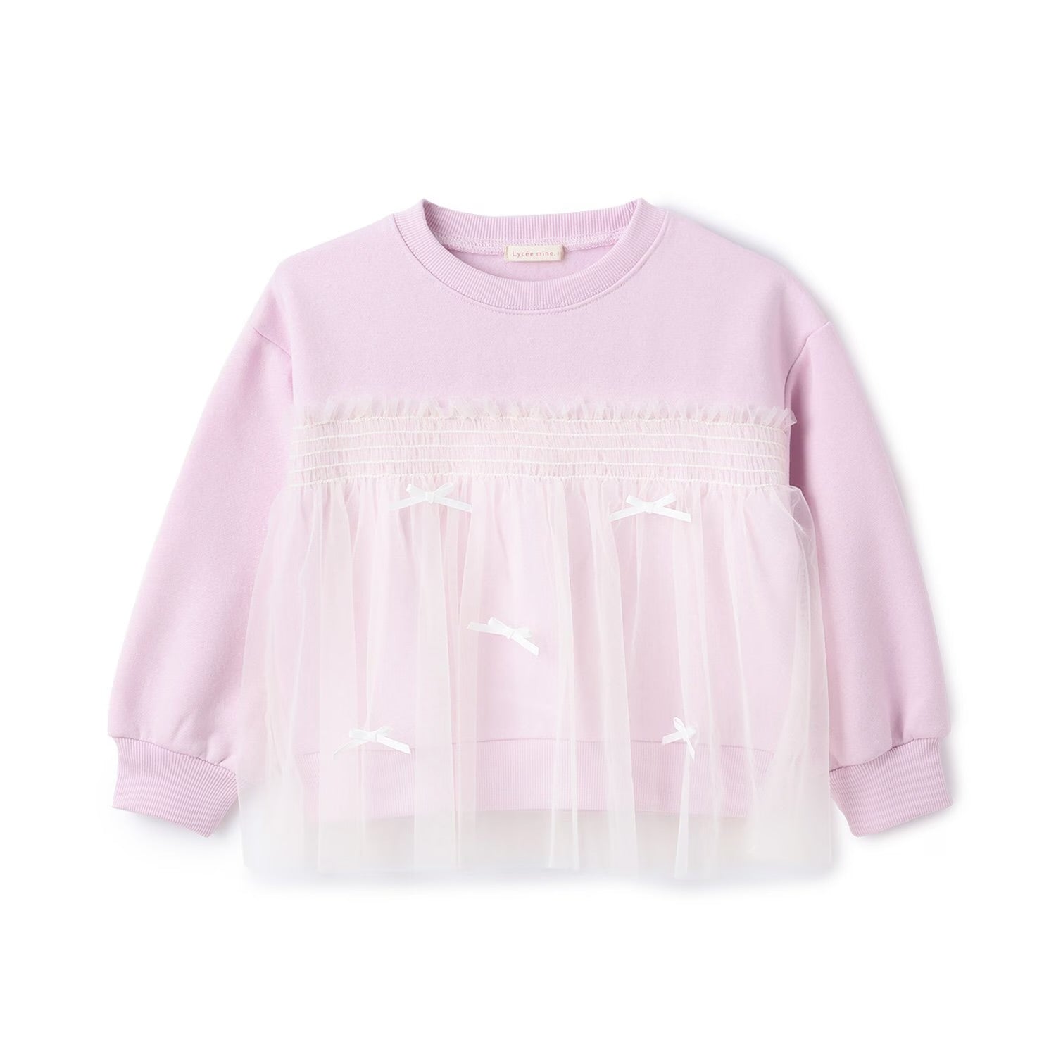 日本童裝 Ly# mine 抓毛緞帶薄紗拼接衛衣 100-150cm 女童款 冬季 TOPS