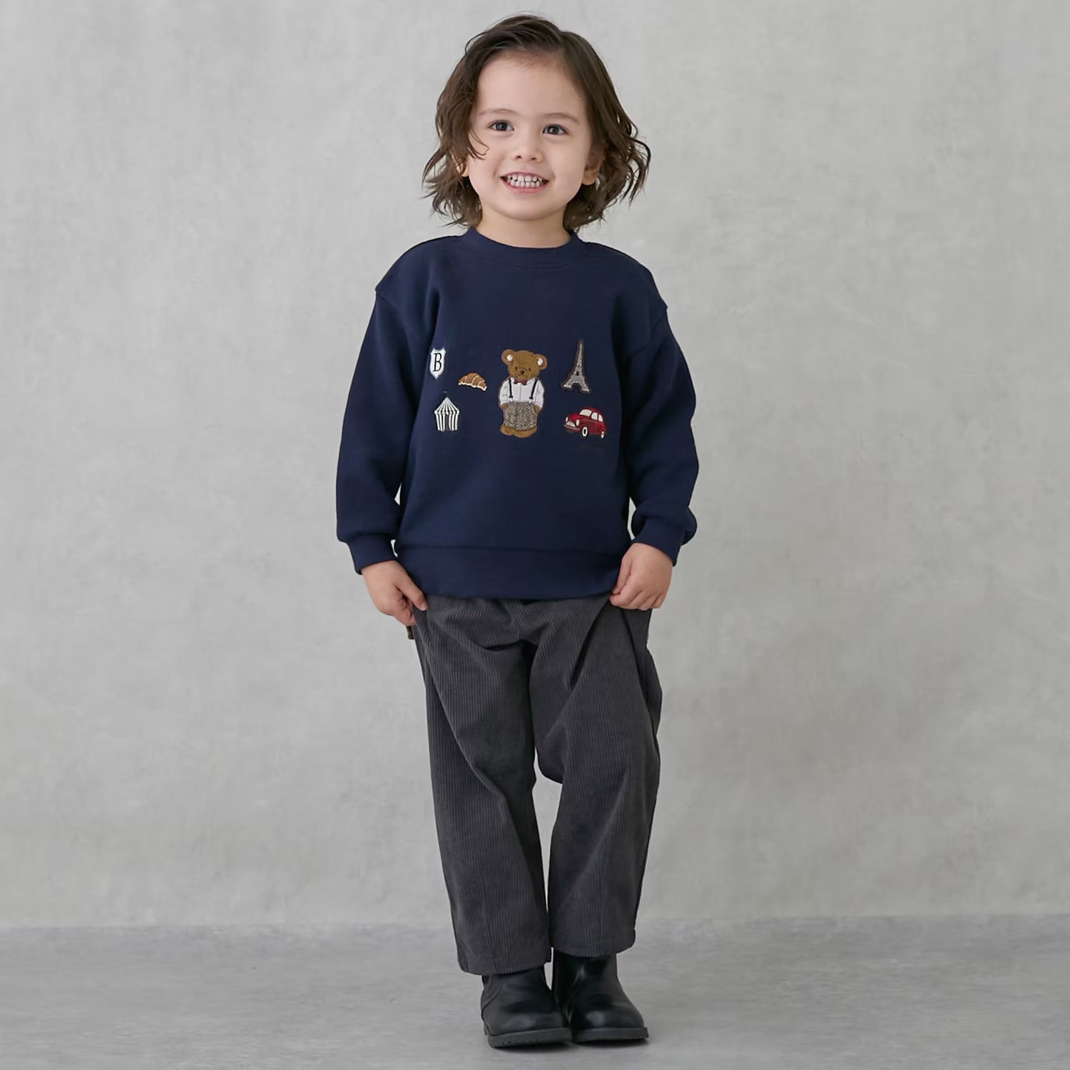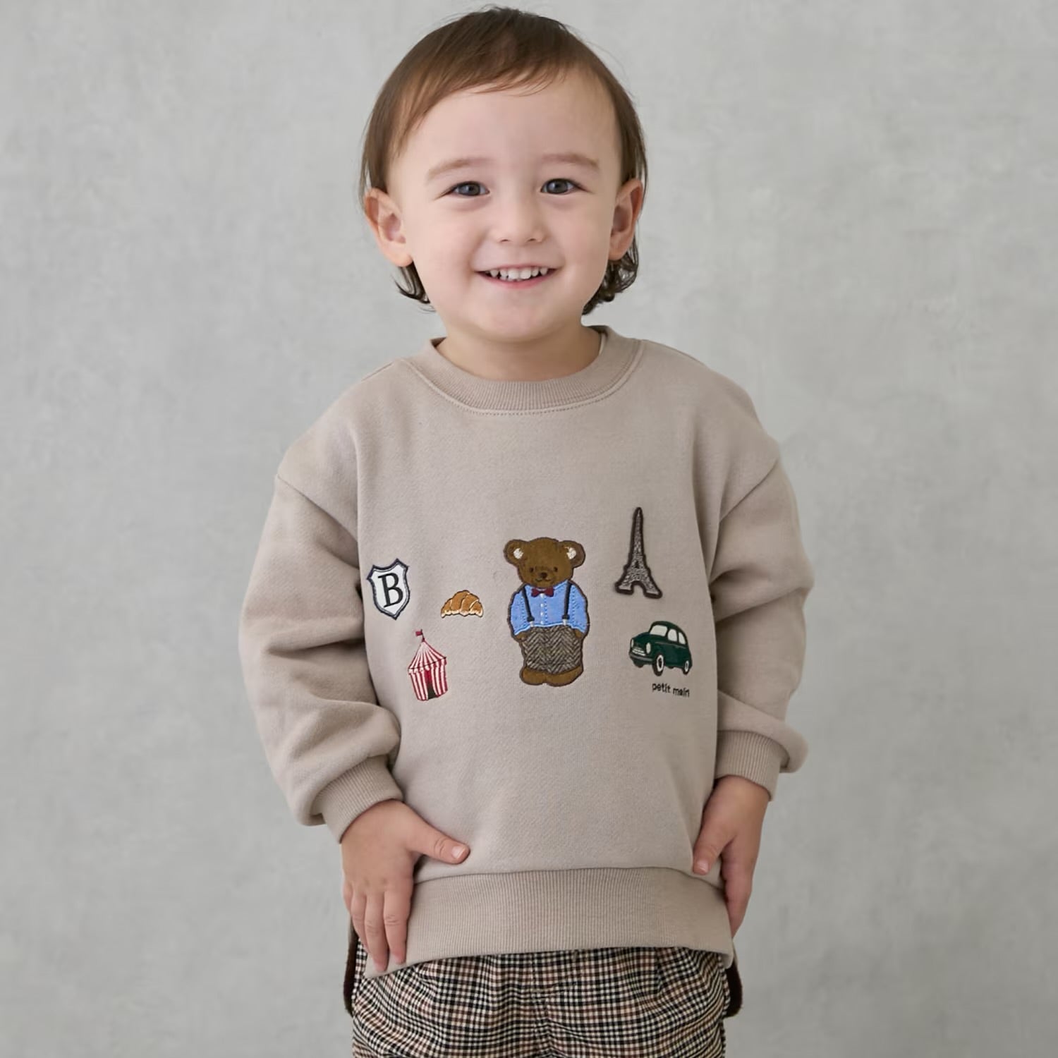 日本童裝 pe#main 假兩件熊仔衛衣 80-130cm 男童款 冬季 TOPS