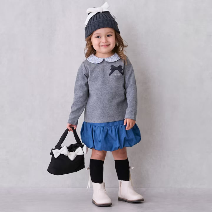 日本童裝 pe#main 緞帶領長袖上衣 80-130cm 女童款 冬季 TOPS