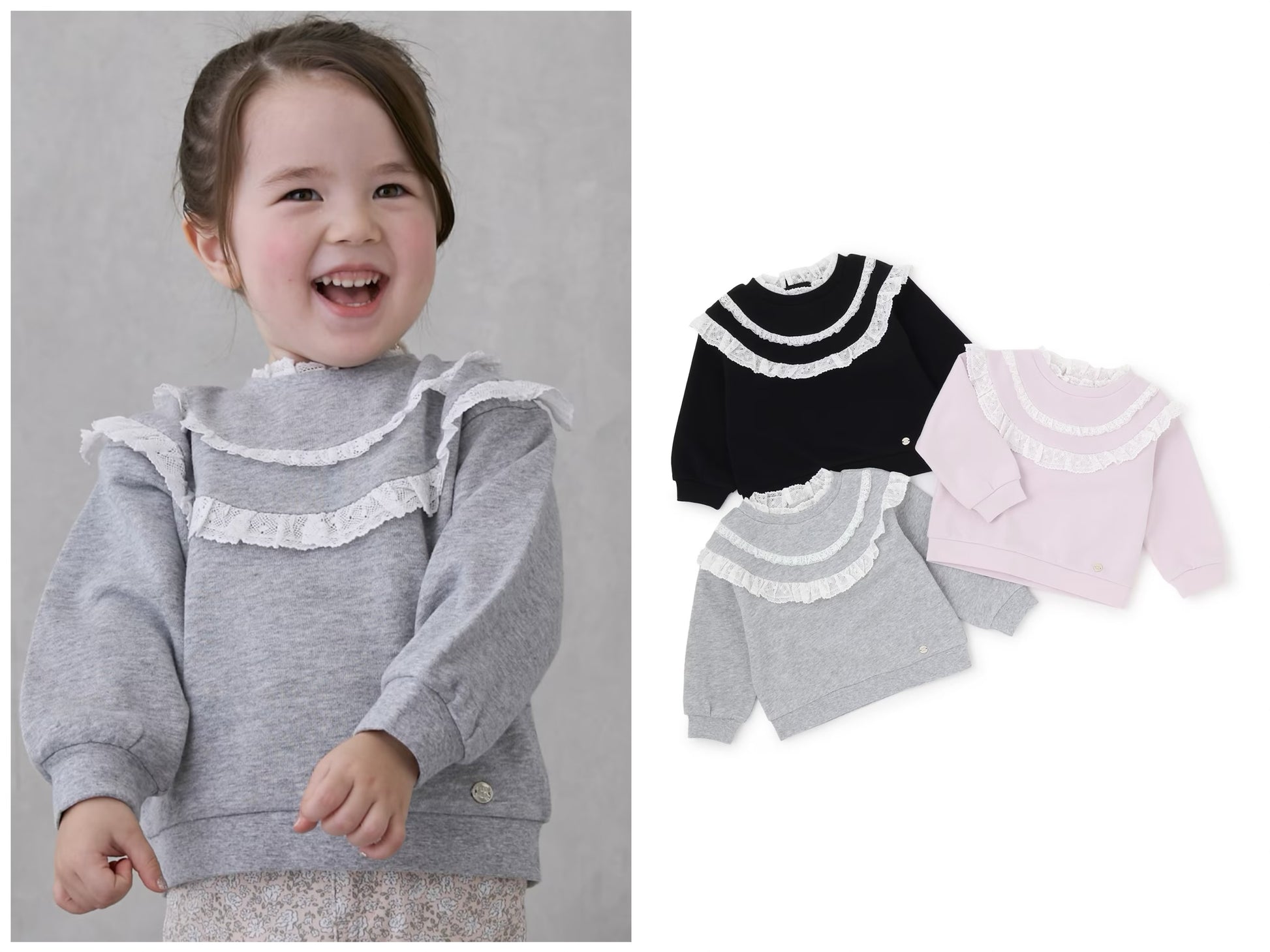 日本童裝 pe#main 蕾絲花邊衛衣 80-130cm 女童款 冬季 TOPS