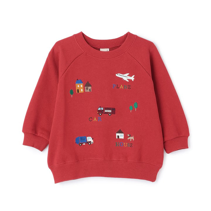 日本童裝 pe#main 車車刺繡衛衣 80-130cm 男童款 冬季 TOPS 聖誕紅/新年紅