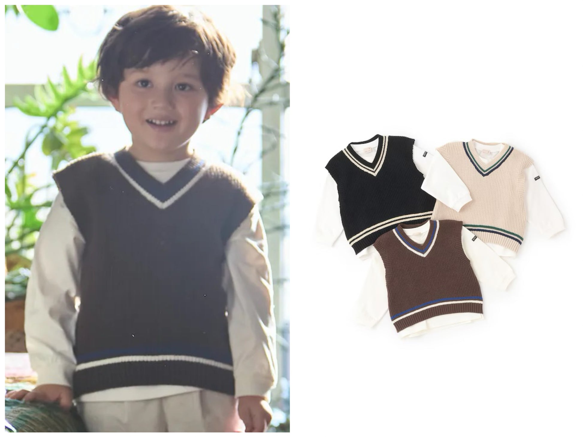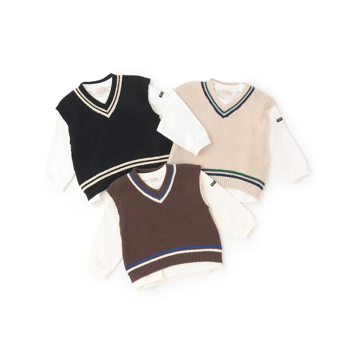 日本童裝 pe#main 針織背心+上衣套裝 80-130cm 男童款 冬季 TOPS