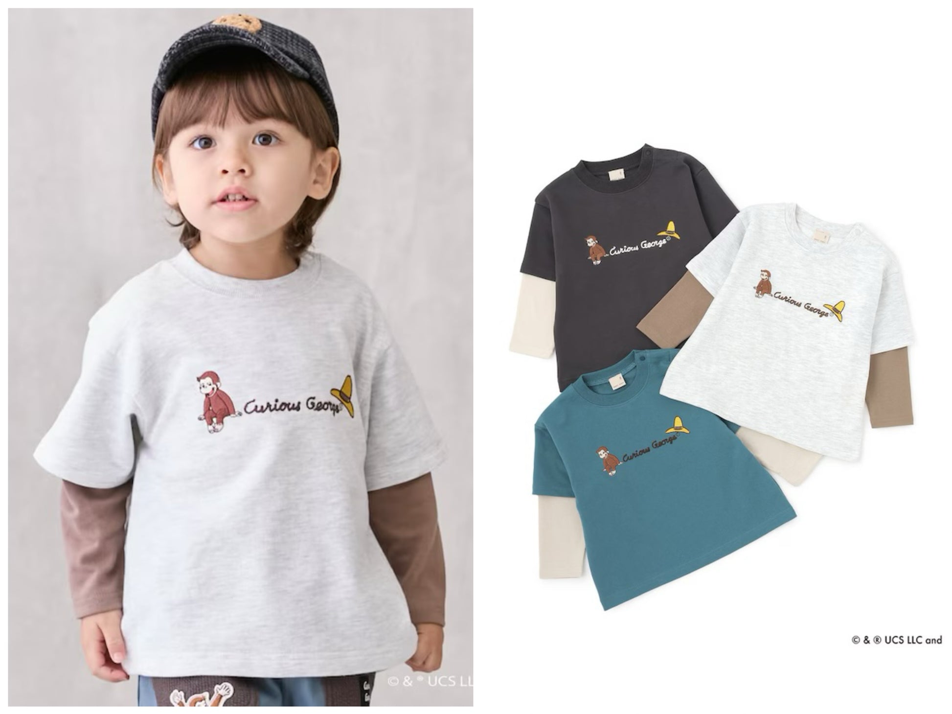 日本童裝 pe#main x Curious George 假兩件上衣 80-130cm 男童款 冬季 TOPS