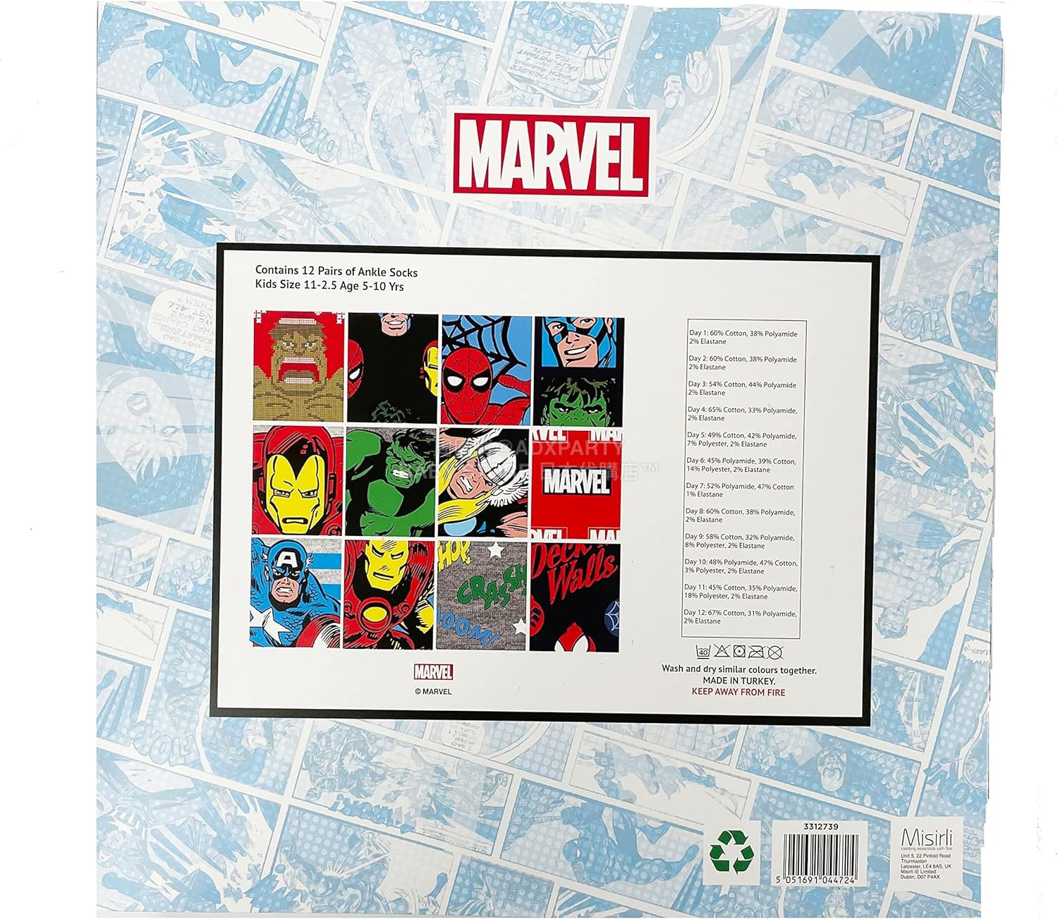 英美直送 Marvel Socks 12 Days聖誕倒數日曆 兒童款 聖誕快樂特輯 聖誕倒數日曆 滿$900可加$25免運 Christmas Advent Calendars 2025