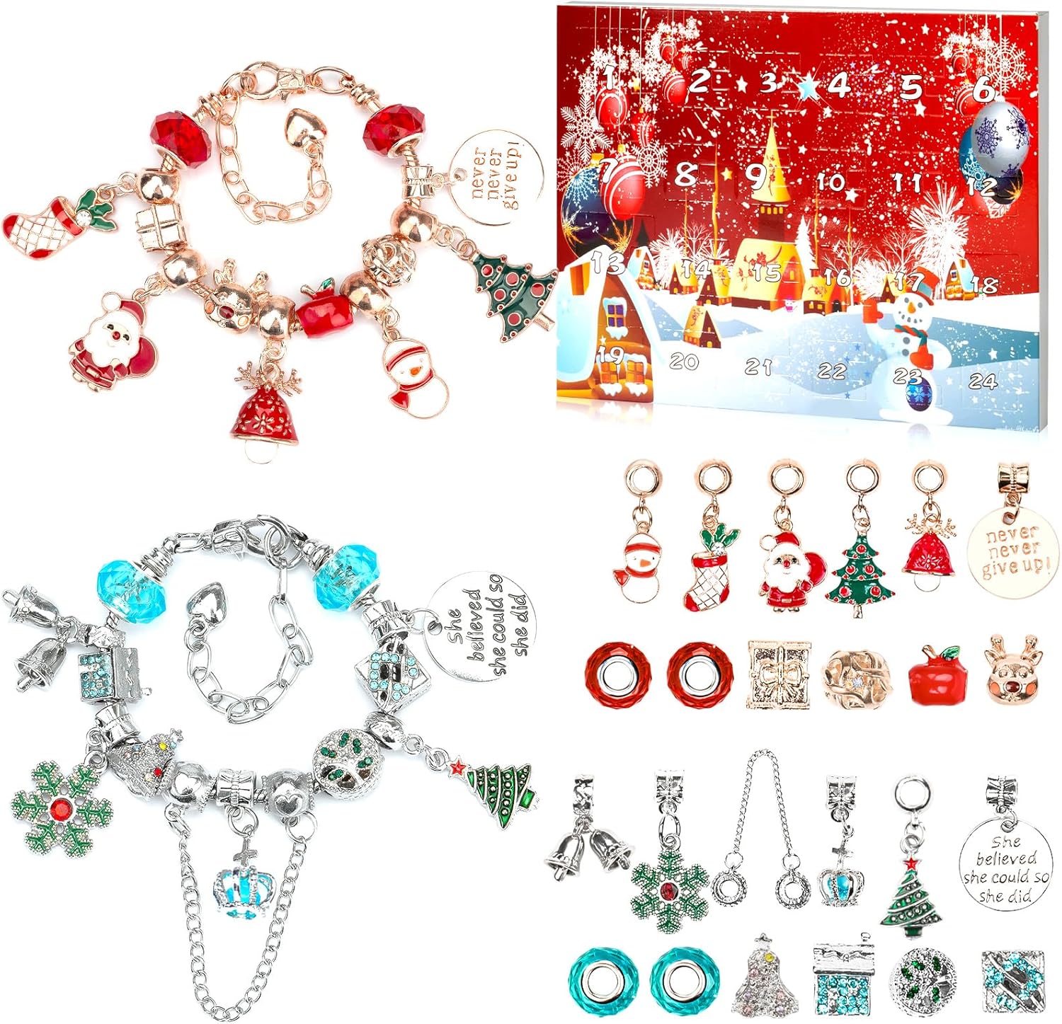 英美直送 Red DIY Charm Bracelet Jewelry 聖誕倒數日曆 兒童款 聖誕快樂特輯 聖誕倒數日曆A 不參與$900免運 滿$900可加$25免運 Christmas Advent Calendars 2025